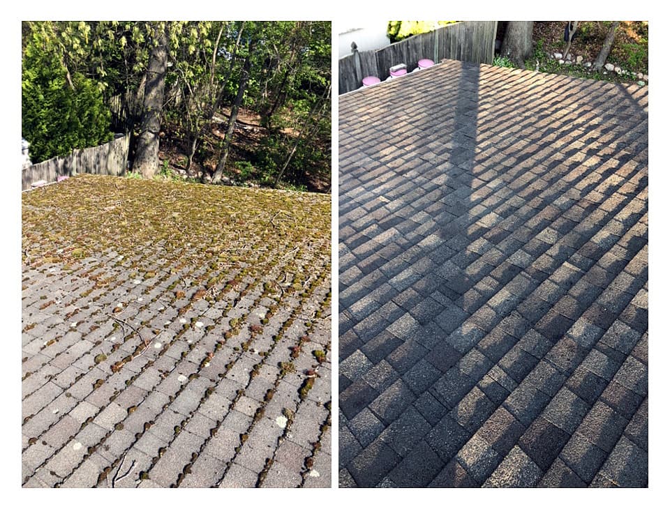 Moss was growing on one part of my roof. I wanted to take care of it before it spread and got worse. HiRoofCleaners came out and sprayed their treatment system to stop further spread and to get rid of the current moss. It’s been four months and now all of the moss is gone and my roof looks like new.